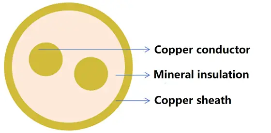 Минерално изоловани каблови се састоје од бакарног проводника, минералне изолације од праха магнезијум оксида и бакарног омотача. Када се каблови користе у фабрикама где је бакар корозиван, може се додати спољни слој поливинилхлорида (ПВЦ). У зградама или подземним локацијама где су естетика или лака доступност важни за кабл, може се додати спољни омотач без халогена, мало дима.